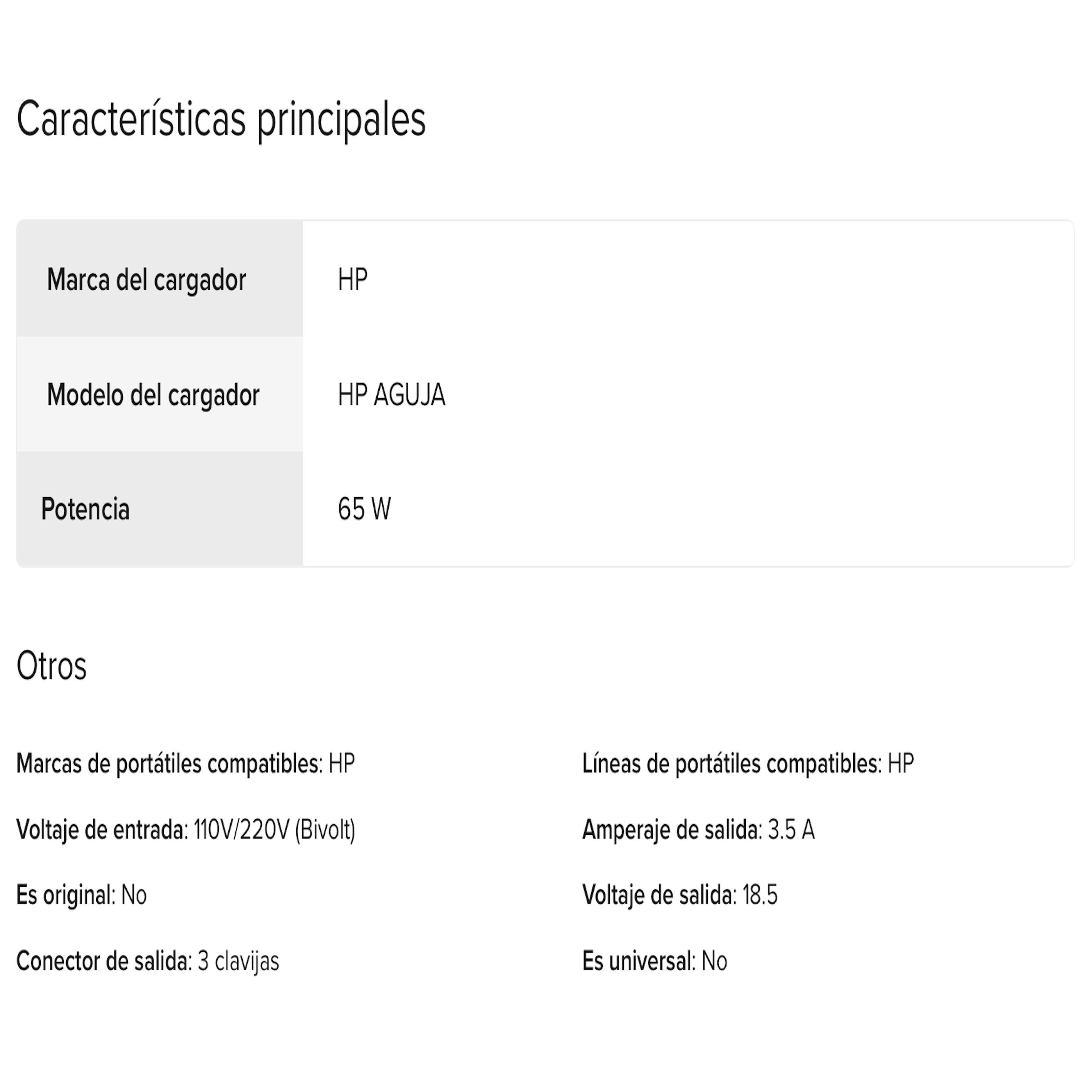 ADAPTADOR DE CORRIENTE HP P. AGUJA